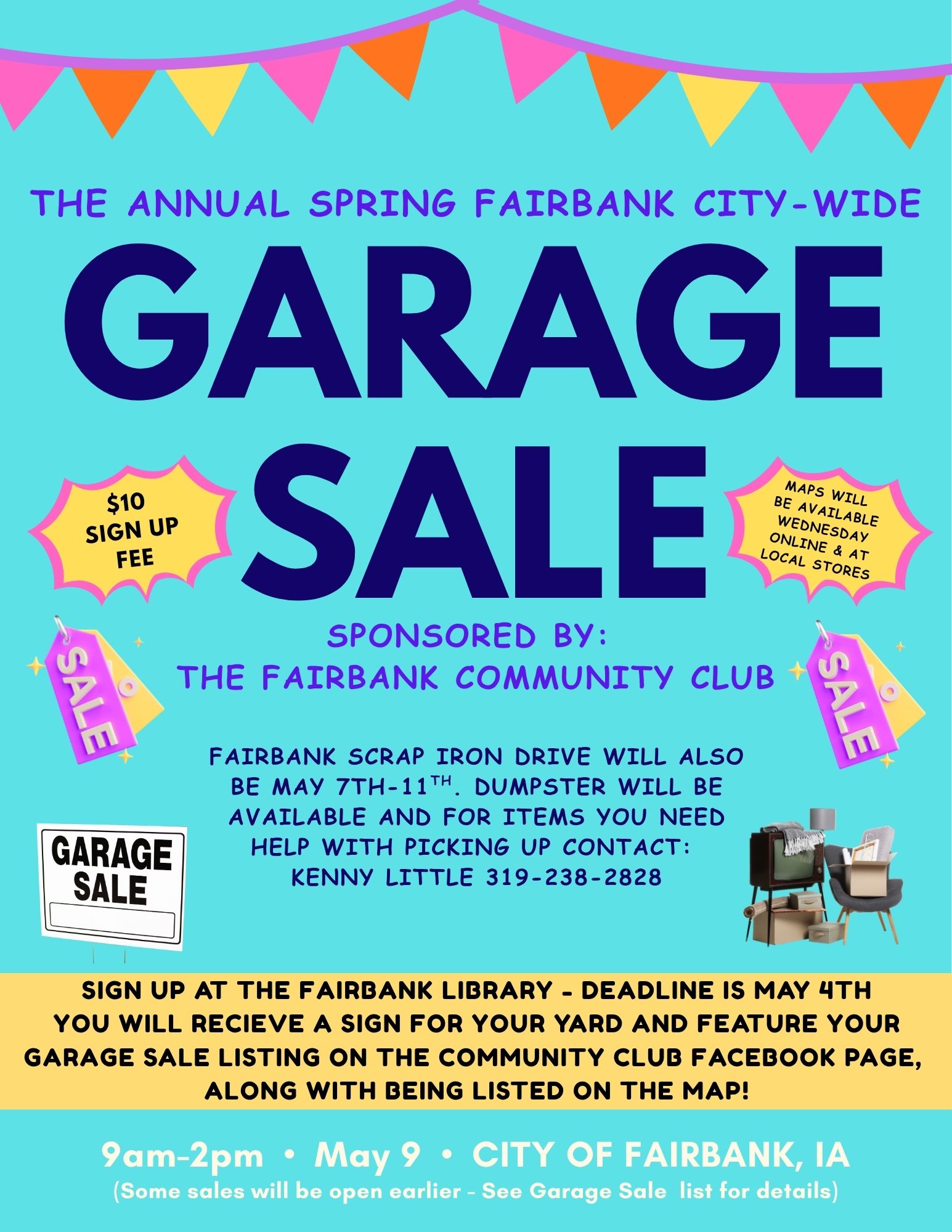 City-Wide Garage Sales - Saturday, May 9th. City-Wide Clean Up Day - Monday, May 11th.