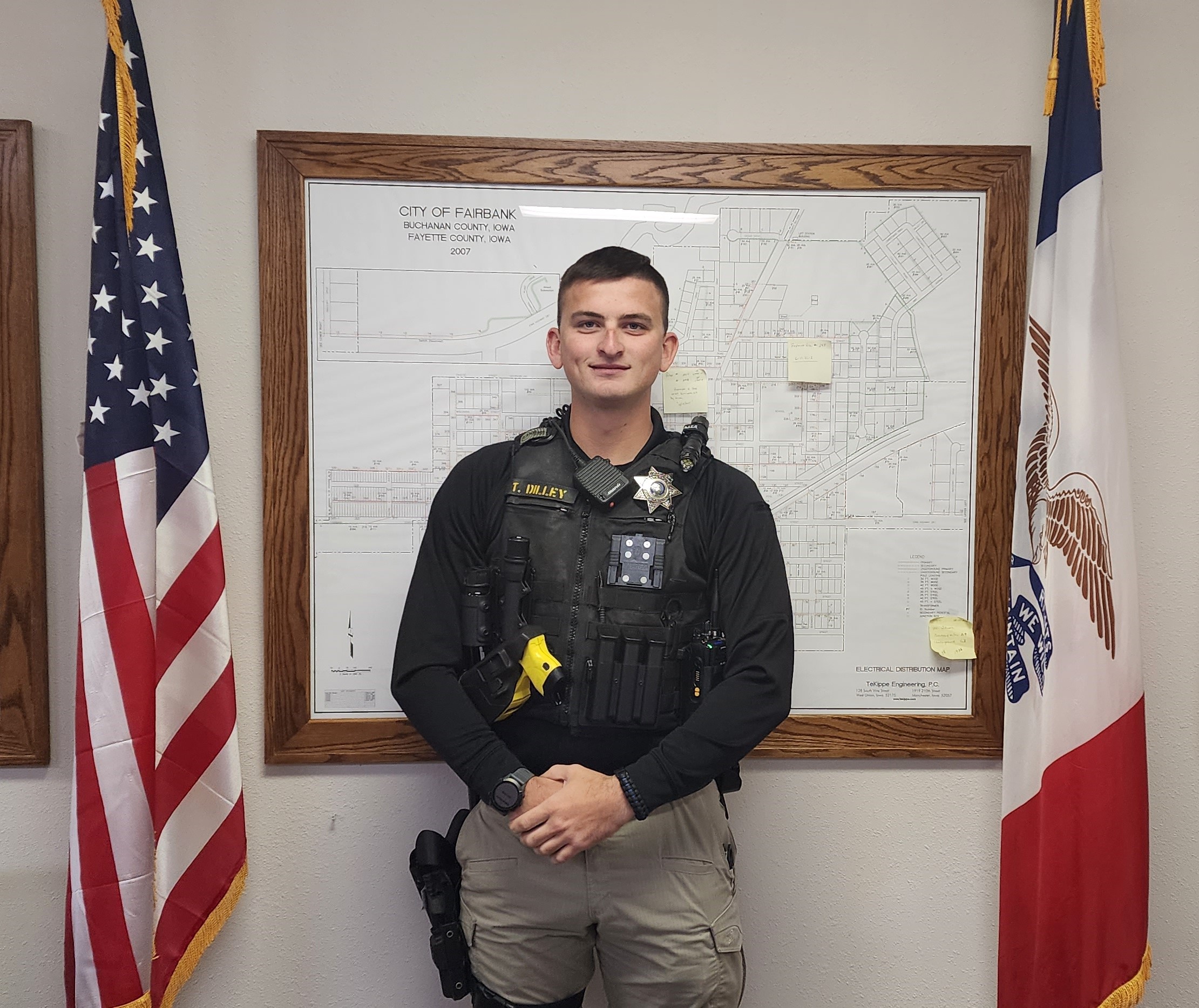 Tristan Dilley is a proud member of the Fairbank Iowa Police Department and has been serving the City of Fairbank since March of 2022. Officer Dilley is currently employed as a Police Officer on a full-time basis for the City of Independence while serving the City of Fairbank on a part-time basis. Throughout his law enforcement career, Officer Dilley has attended and graduated the Iowa Law Enforcement Academy and has become a certified TASER instructor. Officer Dilley is an Emergency Medical Technician (EMT) and used these skills while working on the ambulance service in Independence Iowa prior to becoming a Police Officer. Educationally, Officer Dilley acquired an Associate Degree in Police Science from Hawkeye Community College and uses his training and experience to better serve the City of Fairbank.